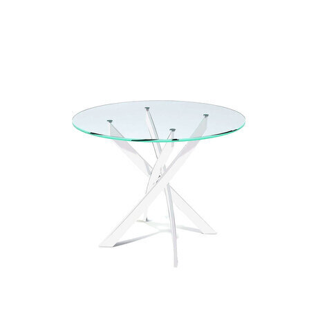 Обеденный стол R100: прозрачная столешница на динамичной белой основе