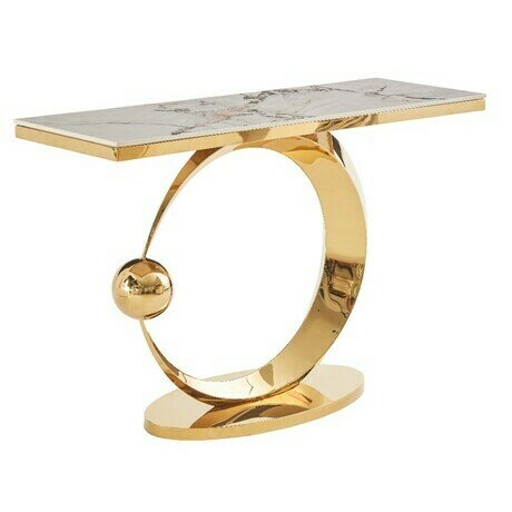 Стол-консоль Дрим. Столешница: керамогранит, цвет белый мрамор (Пандора). Основание: нержавеющая сталь, золото 120х40х76 см.