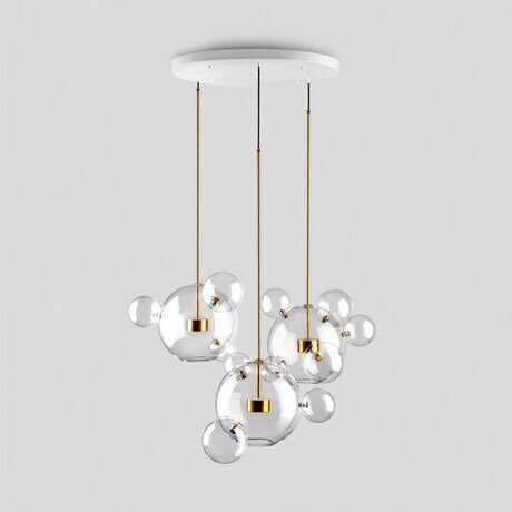 Легкий светильник Bolle Circular 14 Bubbles У людей искусства и творчества проявляется особенный взгляд на привычные вещи. Если мировоззрение, касающиеся окружающей среды у двух или более людей совпадает, то следует ждать появления сенсационного арт-объекта. Светильник Bolle Circular 14 Bubbles был создан в итальянско-английском дуэте дизайнеров. Невесомость мыльных пузырей легла в основу будущей композиции. Финальный результат поразил правдоподобностью.По задумке, маленькие пузыри столкнулись и через мгновение от них останутся только множество капель.В композиции участвуют шары, различающиеся по диаметру. Их ловко соединяют руки профессионала. При просмотре на арт-объект создается чувство, что это лишь мгновенное касание.Стекло выдувается вручную. Плафоны имеют идеальную сферическую форму. Внутри расположена светодиодная лампа, разработанная специально для данной коллекции. Грамотное расположение обеспечивает равномерность освещения в интерьере.Круглое основание позволяет прикреплять композицию к потолку.Цоколь:LEDКоличество плафонов:3Форма плафона:ШарКоличество ламп:3Источник освещения:В комплектеСтиль:Арт-Деко;Лофт;Минимализм;Модерн;Современный;ЭкоМесто применения:HoReCa;Гостиная;Кухня;Лофт;Отель;Прихожая;Спальня;Столовая