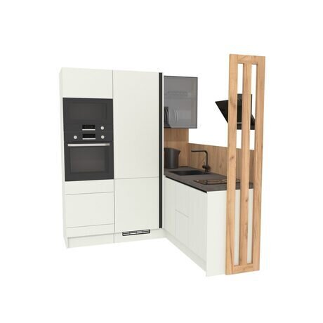Эта лёгкая и минималистичная кухня создана для тех, кто ценит практичность и порядок. Продуманная до мелочей конфигурация включает всё необходимое без ощущения громоздкости.