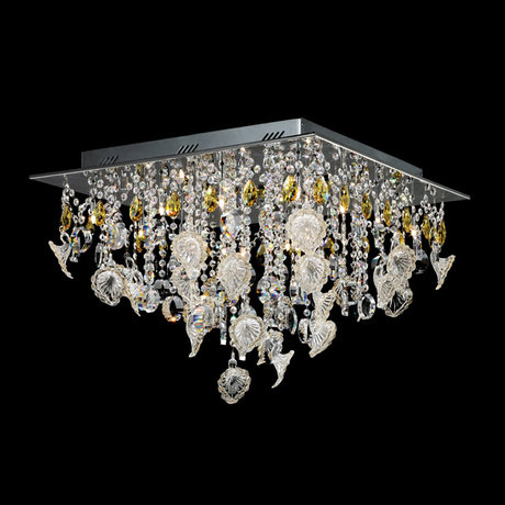 Потолочный светильник из коллекции Emily с хромированной арматурой. Прозрачные хрустальные и ограненные подвески-ракушки из прозрачного муранского стекла. Люстра может стать изысканным украшением интерьера гостиной или столовой.