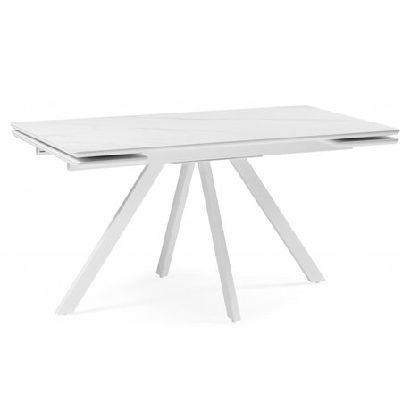 ВиллиРаздвижной обеденный стол на металлокаркасе, столешница из керамики, белый мрамор, 80×140(200)×75 см, на 6-10 человек